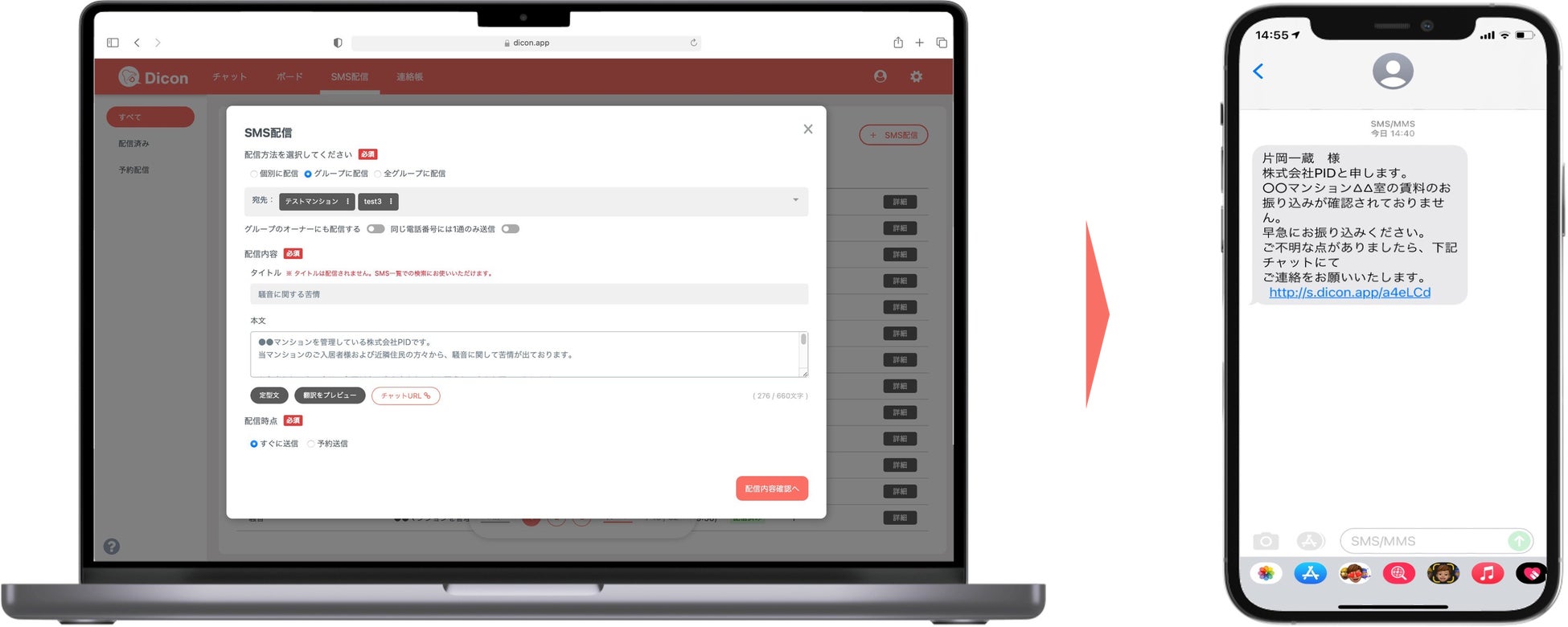 Diconは、多言語対応のSMSとチャットを活用し、現場・スタッフ・外国人との“属人的な連絡”をチームで共有・管理できる業務連絡のDXツールです。アプリ不要、翻訳は自動、履歴はすべて記録。誰でも直感的に使えるため、対応漏れや情報共有のミスを最小限に抑えます。