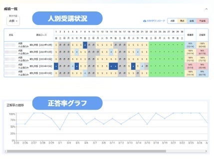 ③成績確認:実施状況から正解率・定着率まで把握し、モチベーションの変化を分析可能