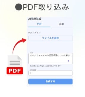 研修で使ったPDFデータを取り込むことで、研修内容に即した問題が簡単に作成できます。