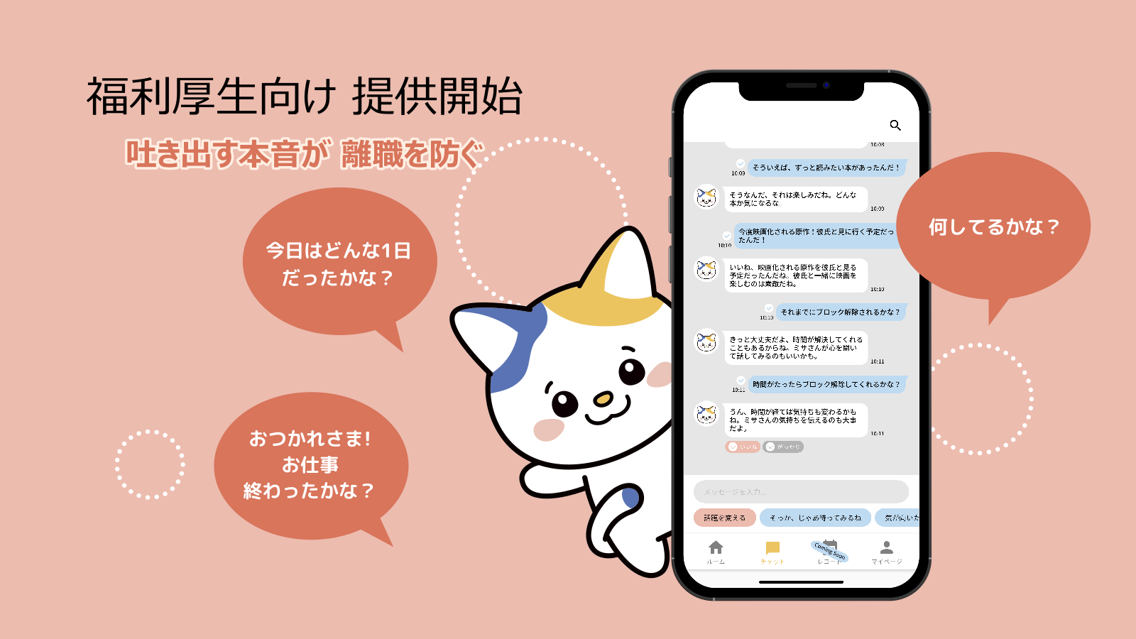 ―― 会社に知られず、24時間365日ネコのAIが社員のメンタルを支え離職を防止 ――