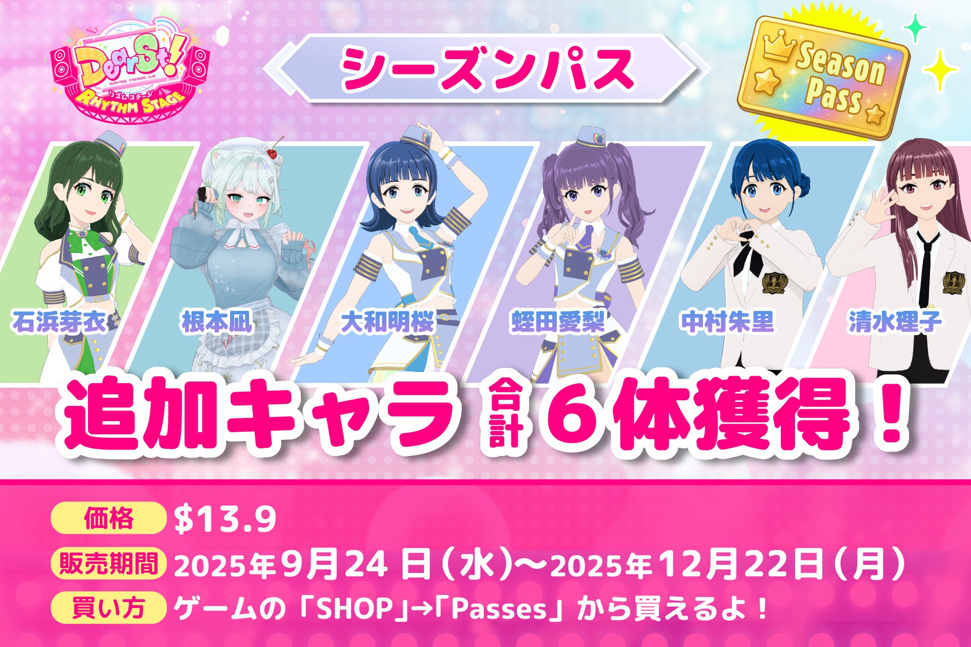 さらに、シーズンポイントを貯めた後に「シーズンパス」を購入すると、追加キャラクター6体が獲得可能。追加キャラクターには一部パラメーターが強化されており、プレイするたびに通常より多くの「でぃあすと!ポイント」を獲得できる仕様となっています。