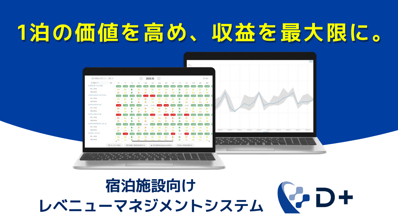 本展示では、旅館・ホテル・グランピングなどの宿泊事業者を対象に、価格調整や販売判断を支援する宿泊施設専用レベニューマネジメントシステム「D+」の取り組みをご紹介します。