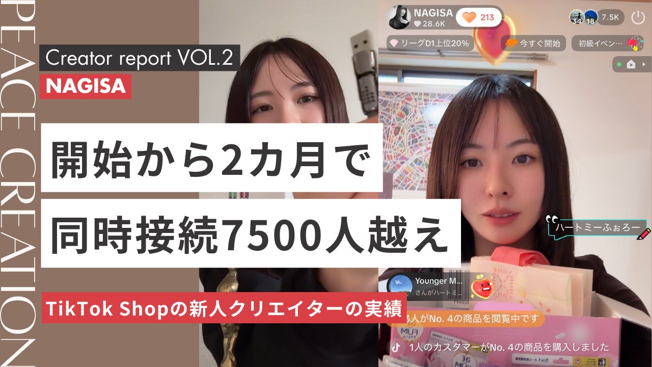 【所属クリエイターレポート】TikTok Shop開始2か月でライブ配信の同時接続数が7500人越え!Peace Creation所属の「NAGISA」さんが急速に成長中