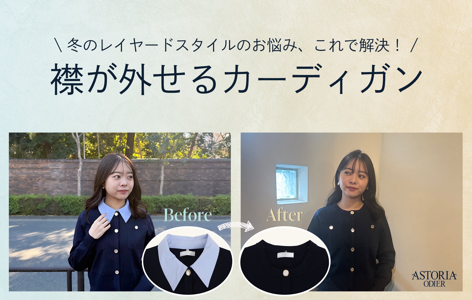 【上品でフェミニンなオフィススタイルを提案する“アストリアオディール”】シャツスタイルのコーディネートを手軽に実現する「300日着られるニット」を1月13日(火)より発売開始
