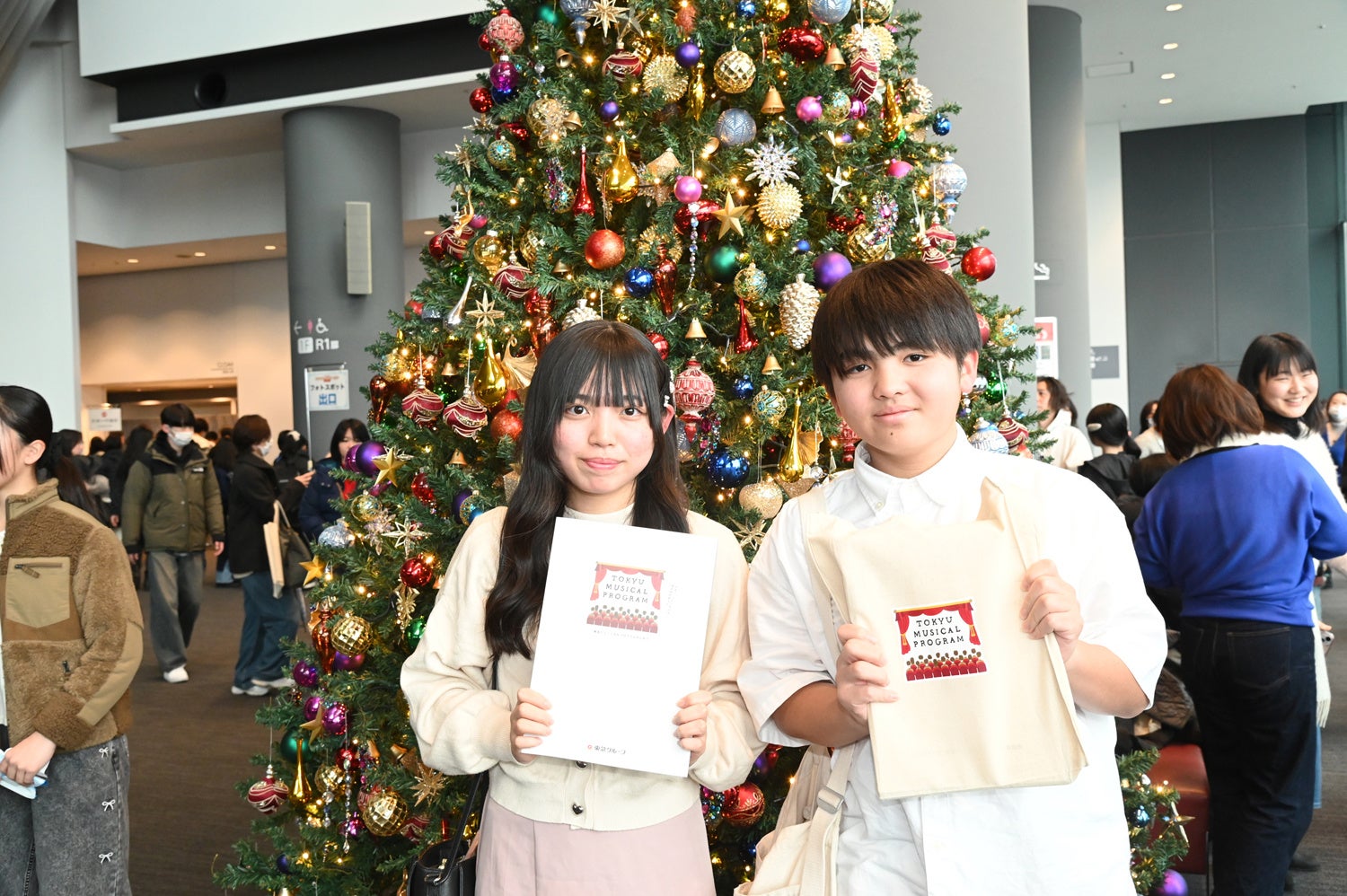 東急ミュージカルプログラム当日、このプログラムの主役である中学生・高校生のみなさまが、ご友人やご兄弟、ご両親など大切な方と一緒に数多くご来場くださいました。入場時には少し緊張した表情も見られ、「渋谷駅直結の施設にミュージカル劇場があるなんて知らなかった。どんなステージが見られるのかドキドキする」という声も寄せられました。いざ演目が始まると、華やかな衣装と音楽に彩られたシンガーやダンサーのパフォーマンスに夢中になり、自然と手拍子が広がります。会場全体が一体となる空気の中で、心躍るクリスマス体験を楽しんでいただきました。目の前で繰り広げられる迫力のステージに圧倒され、シンガーやダンサーと共に踊り、会場ならではの躍動感を存分に味わう、ここでしかできない体験に目を輝かせる姿がとても印象的でした。