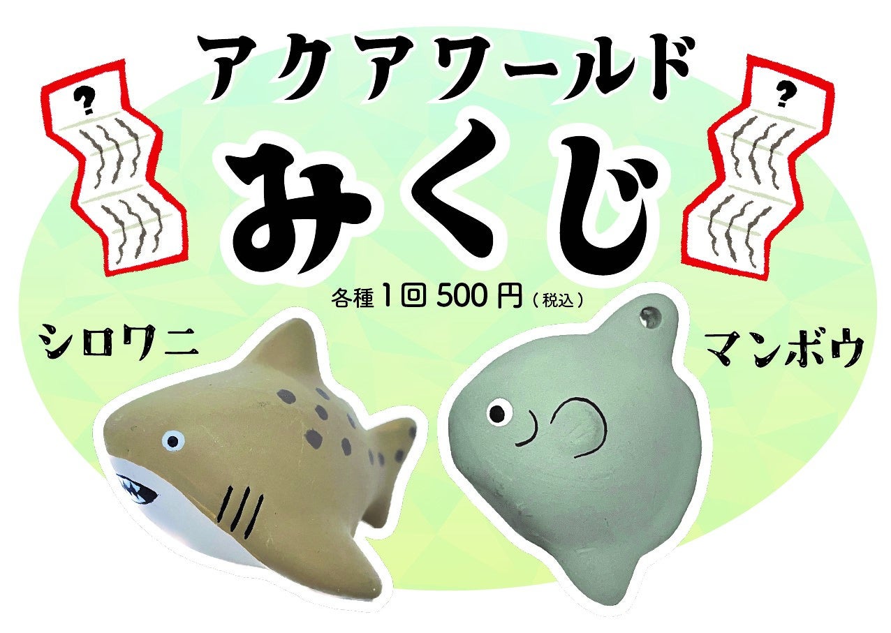 毎年大好評のオリジナルおみくじ「アクアワールドみくじ」を今年も期間限定で販売いたします。今年もシロワニとマンボウの陶器製置物付きおみくじが登場。さらに、10分の1の確率で入っている「大当たり」をひいた方には、アクアワールド・大洗の展示水槽で回収されたシロワニの歯をプレゼントします。アクアワールド・大洗で2026年の運勢を占ってみませんか?