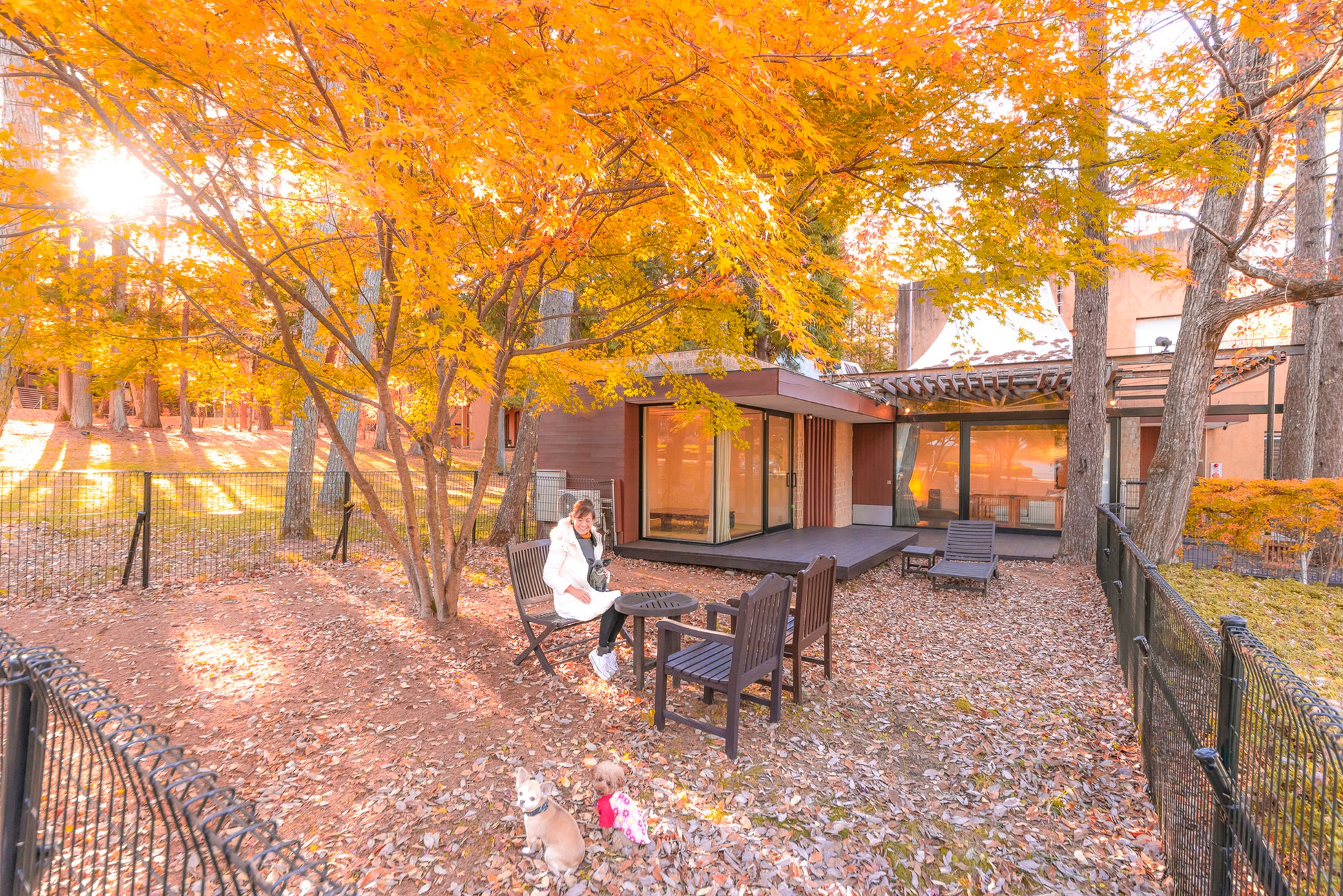 フジプレミアムリゾートには、ファミリーやグループでの滞在におすすめな〔ホテルスポルシオン〕と1棟ずつ異なる間取りやデザインのラグジュアリータイプの〔フォレストヴィレッジ〕があり、すべての客室が60㎡以上と広々とし、〔ホテルスポルシオン〕と〔フォレストヴィレッジ〕のそのそれぞれに愛犬と滞在できる専用の客室を備えております。