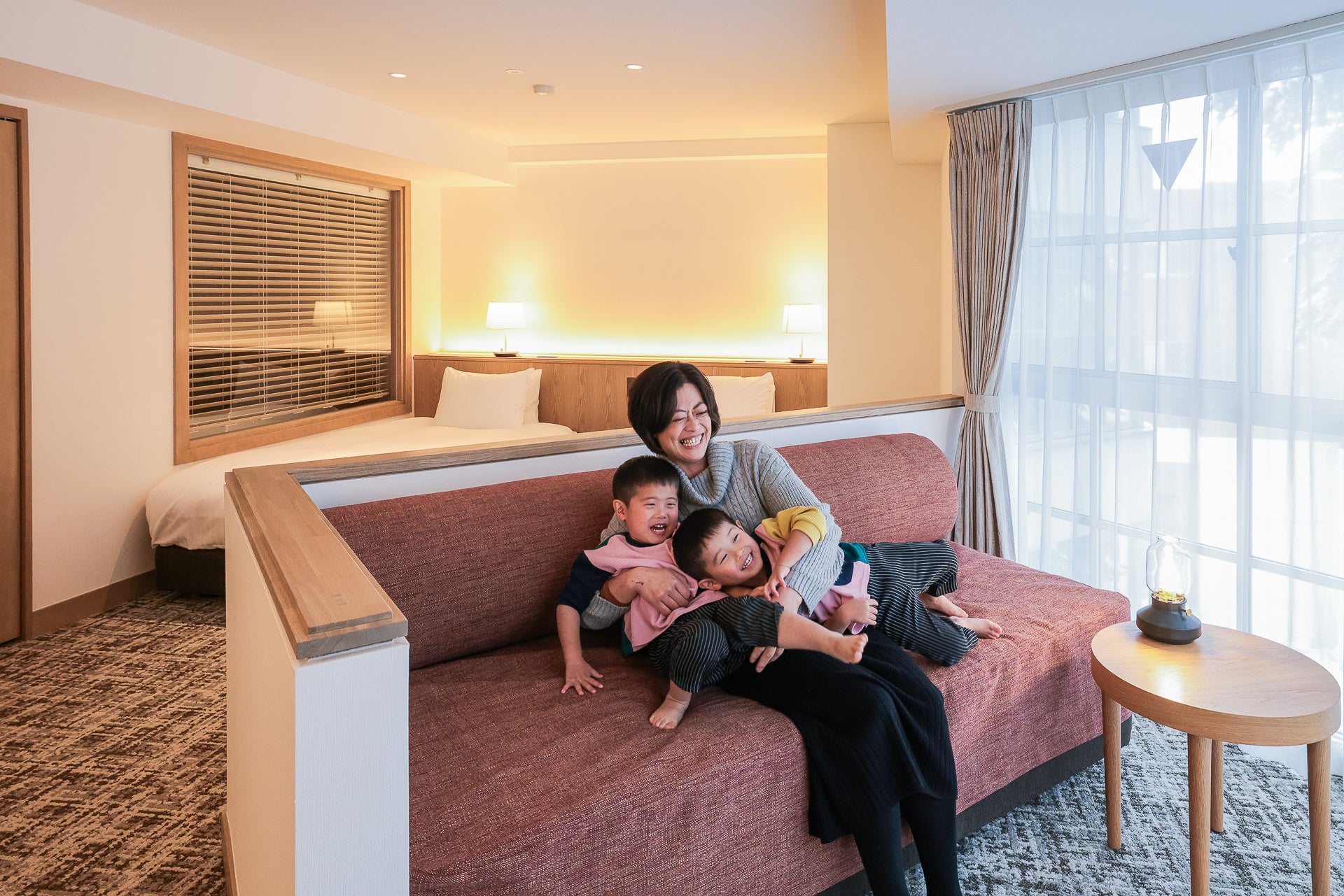 グランデスイート限定: コネクティング利用で最大10名様まで宿泊でき、3世代旅行やグループ利用にもおすすめです。