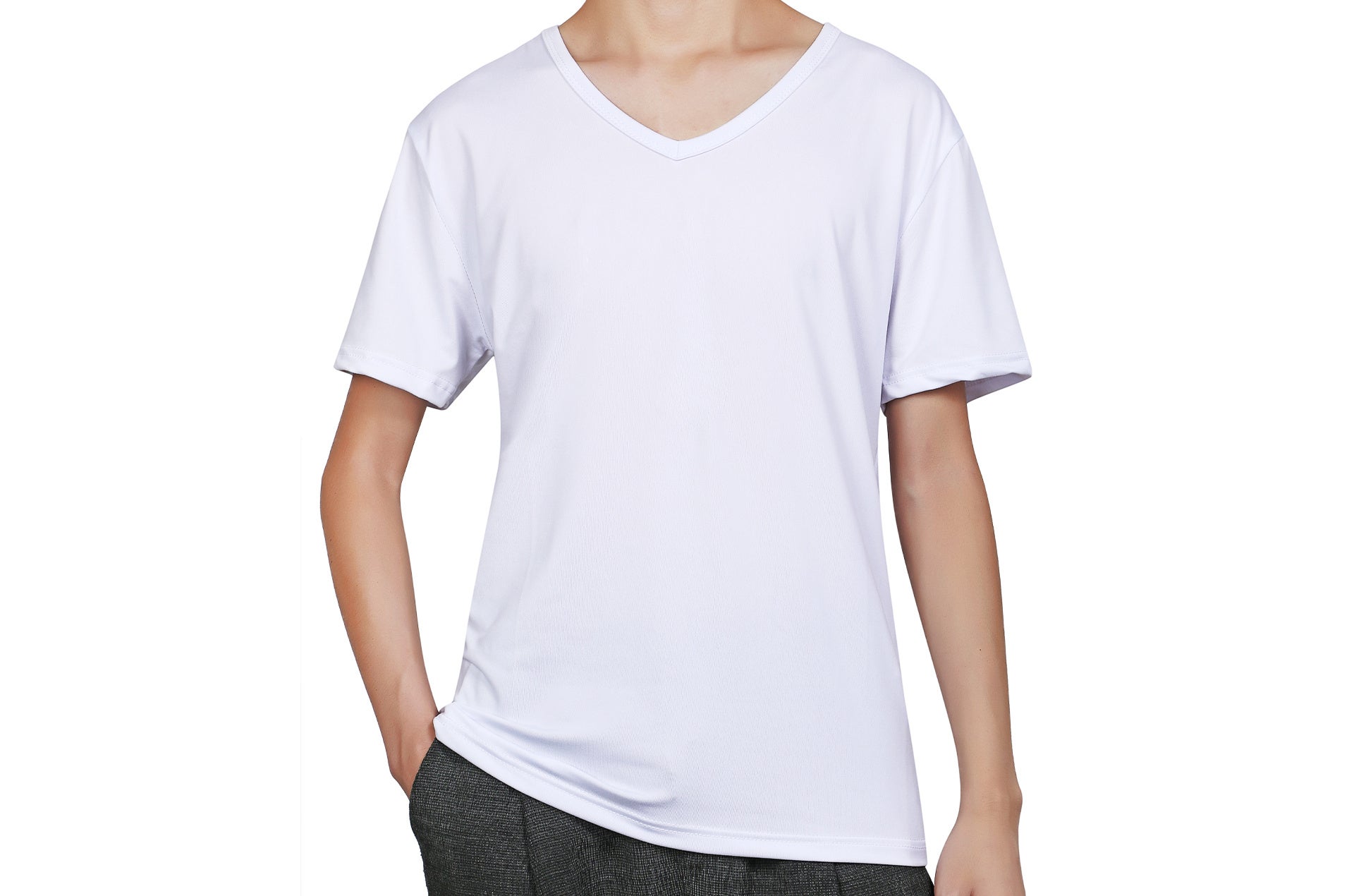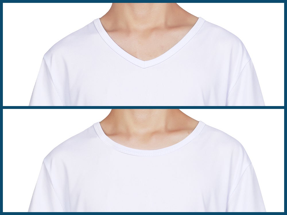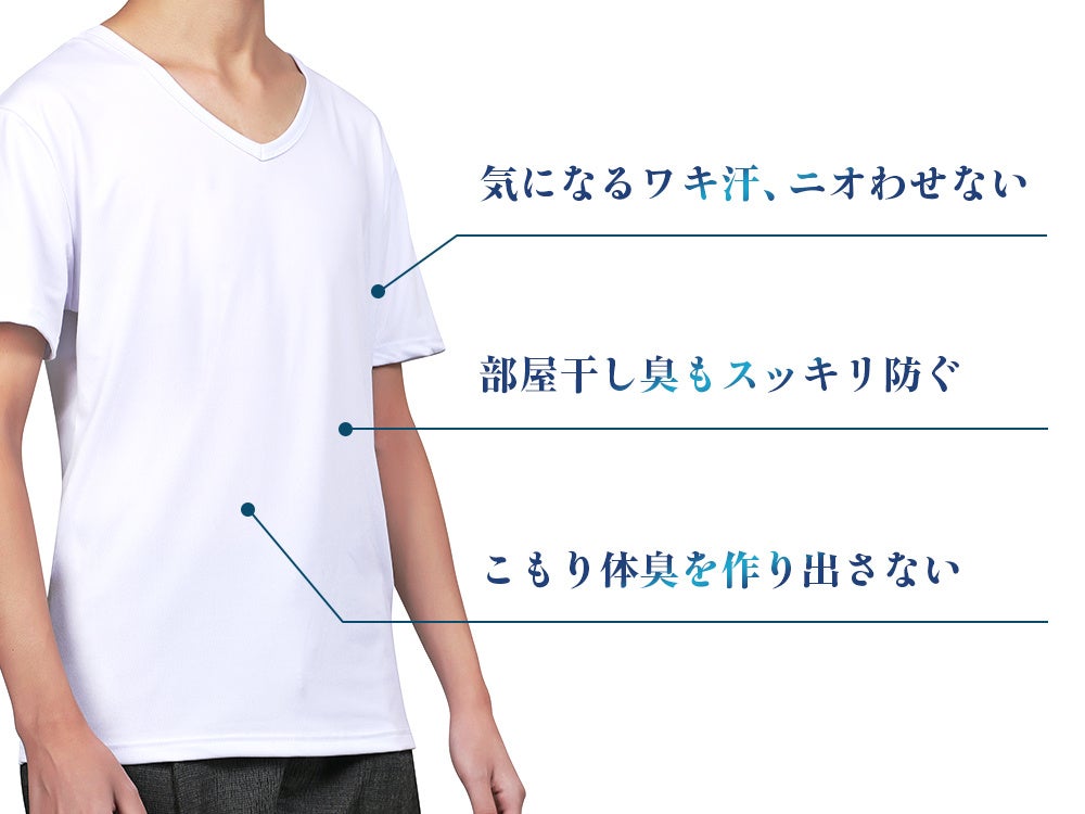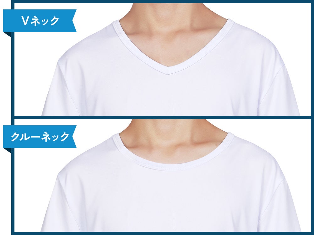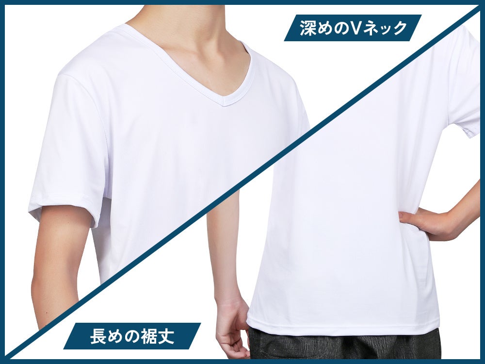 深めに設計したVネックにより、ワイシャツやスーツの下に着用してもインナーが見えにくく、ビジネスシーンでも安心して着用できます。