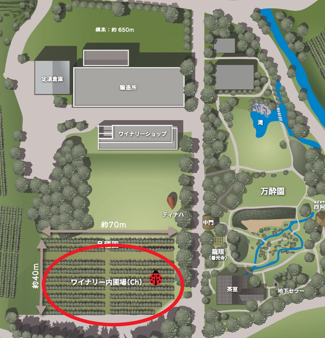 収穫地:長野県小諸ワイナリー内圃場(標高690m、南面緩傾斜、埴壌土)