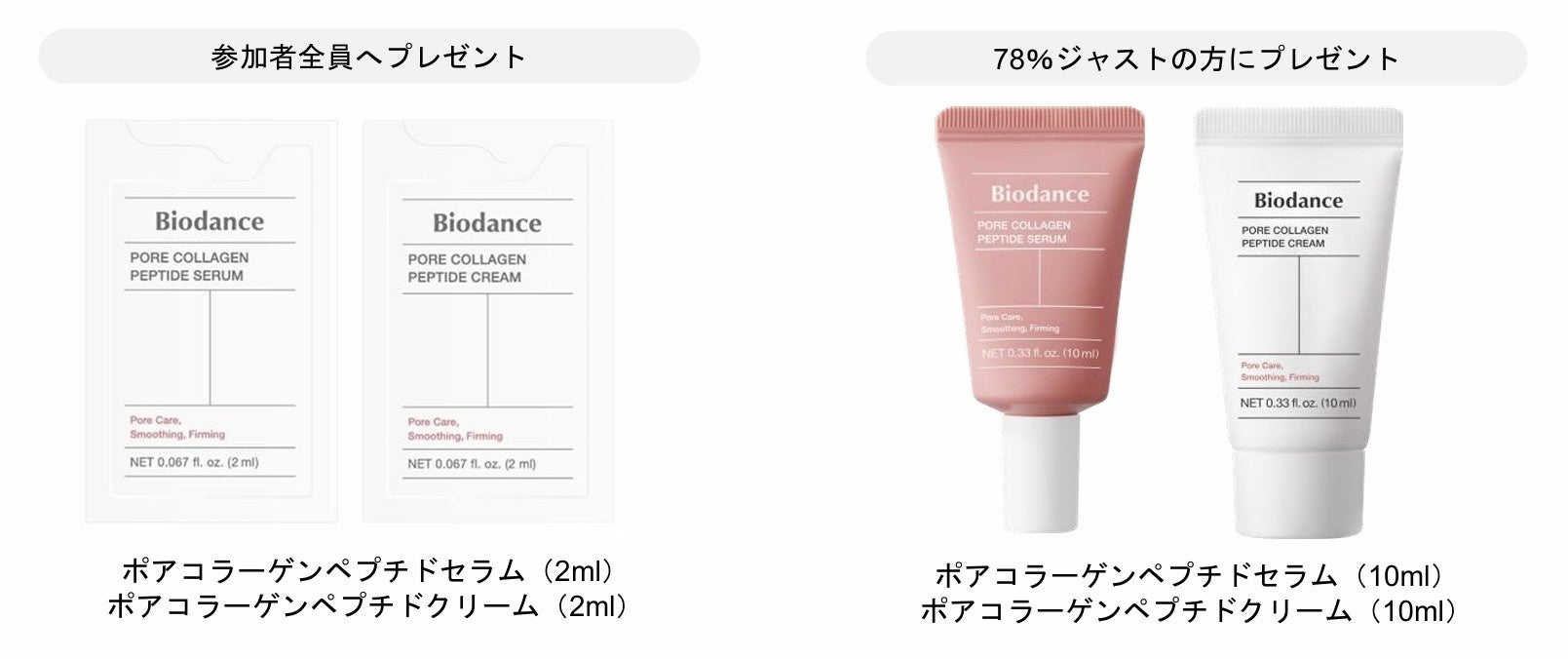 ご参加いただいた方全員に、コラーゲンラインのサンプル(セラム・クリーム 各2ml)をプレゼント。さらに、78%ぴったりで止めることができた方には、セラム・クリームのミニサイズ(各10ml)を進呈いたします。