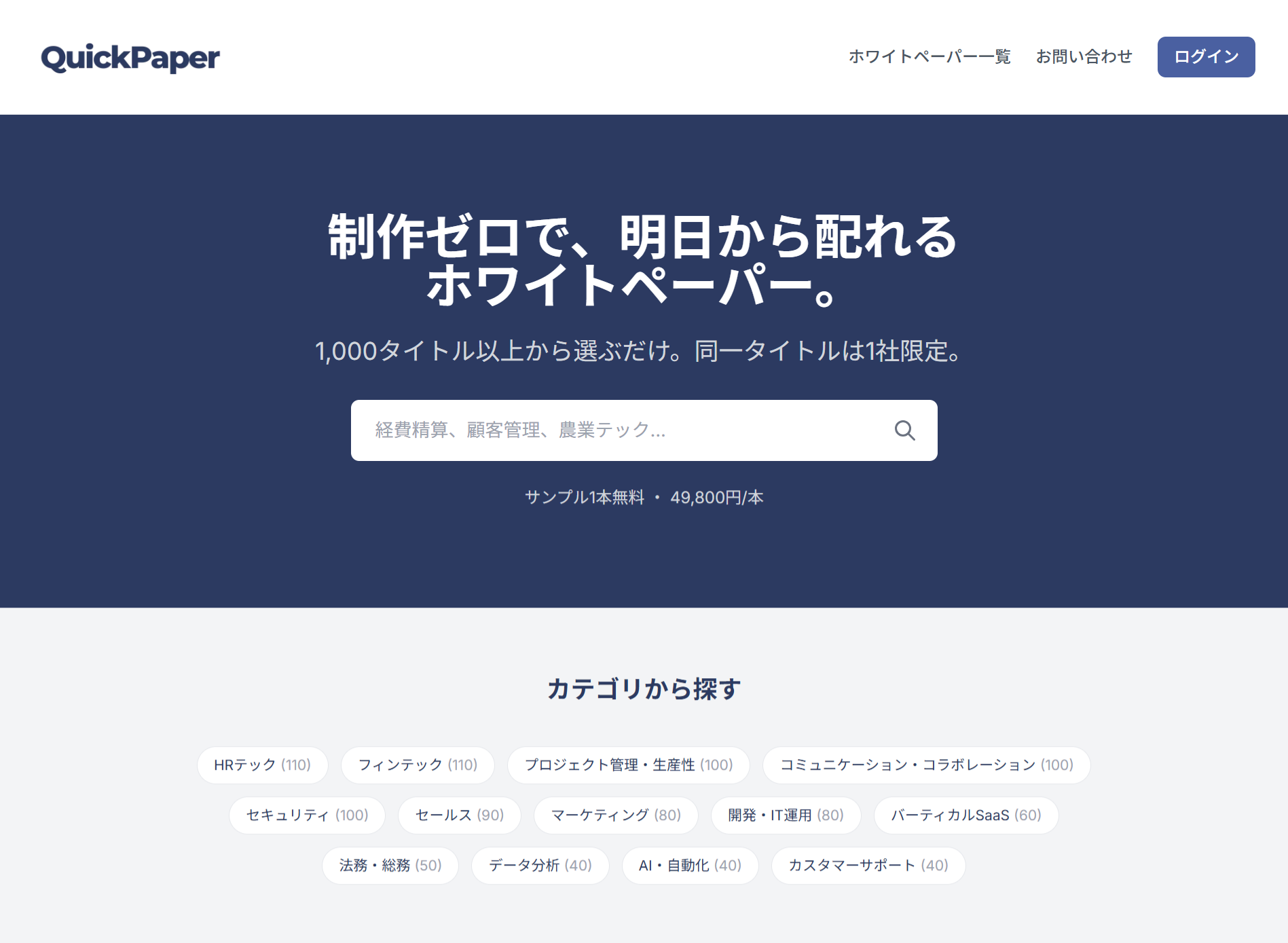 制作ゼロで明日から配れるホワイトペーパー販売サービス「QuickPaper」を正式リリース