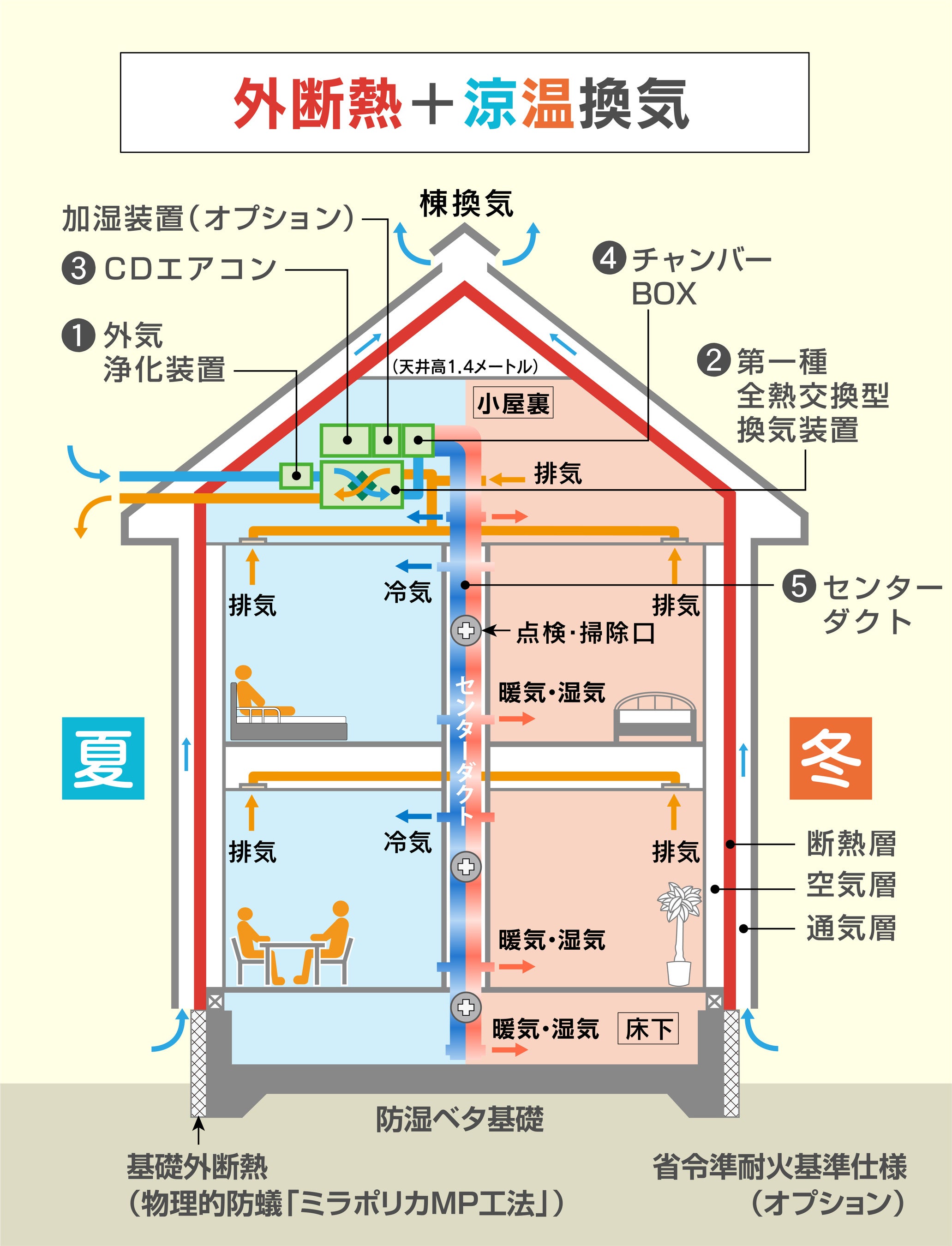マツミハウジング株式会社のセンターダクトを使った『涼温な家』のホームページ