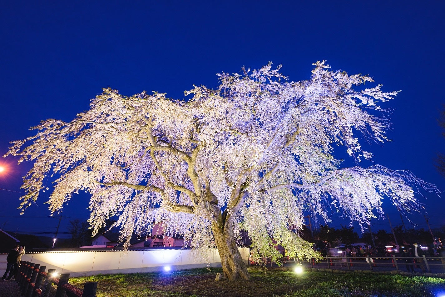 境内に咲く大きなしだれ桜は、北斗市を代表する春の風景のひとつで、優雅に枝を垂らす姿が訪れる人々を魅了します。夜間にはライトアップにより、柔らかな光に照らされた幻想的な景色を楽しめます。日中とは異なる静かな時間が流れる特別な花見スポットとなっております。