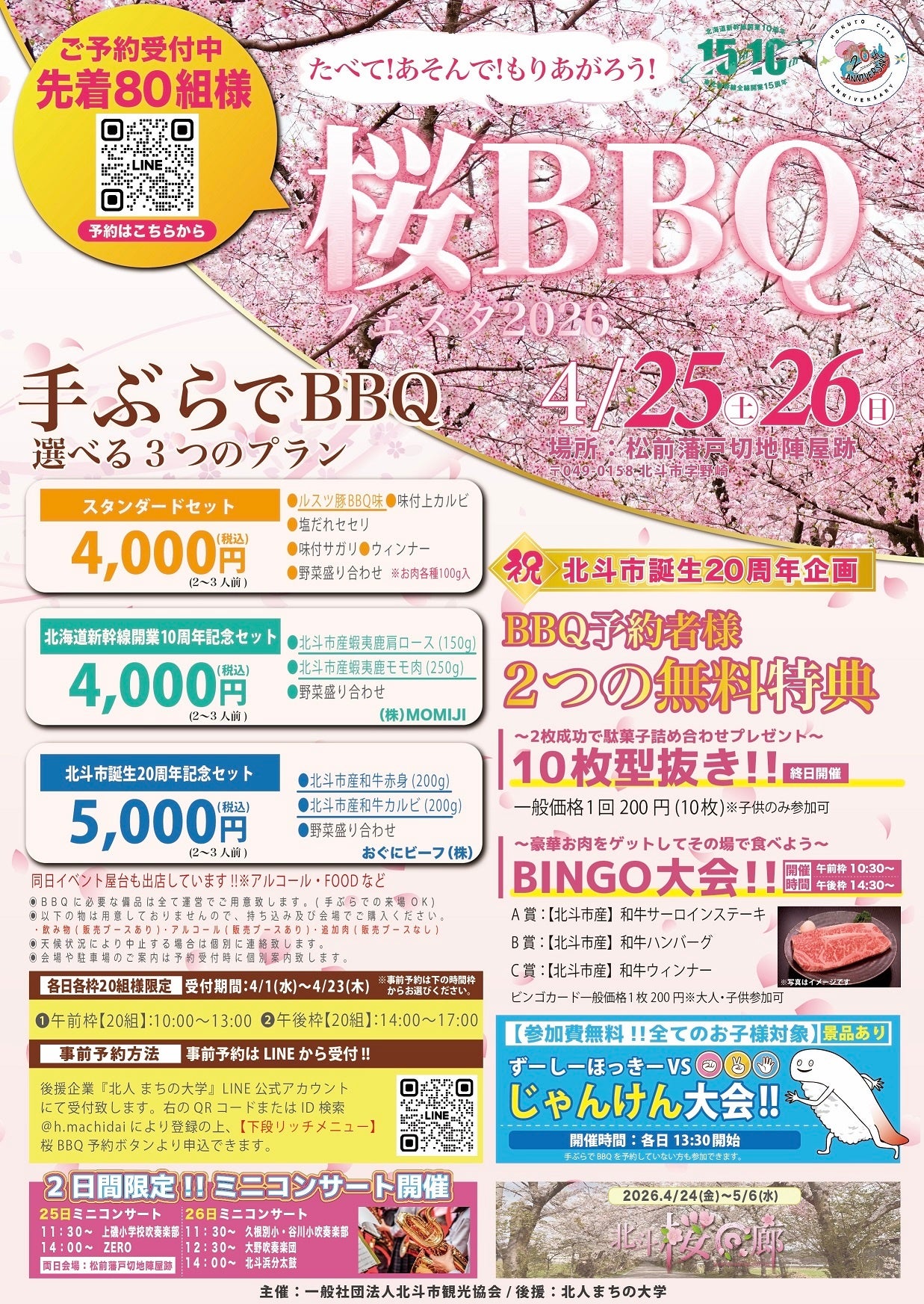 週末イベントや桜BBQ、夜間ライトアップで昼も夜も楽しめる北斗の桜イベント