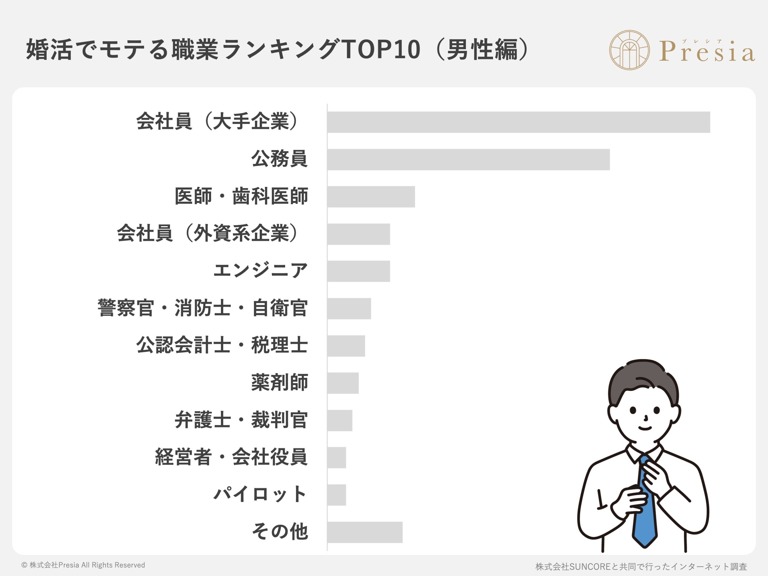 ※掲載しているグラフや内容を引用する場合は、「結婚相談所Presia」と明記し、こちらのページ(https://presia.jp/popular-occupation/)へのリンク設置をお願いします。