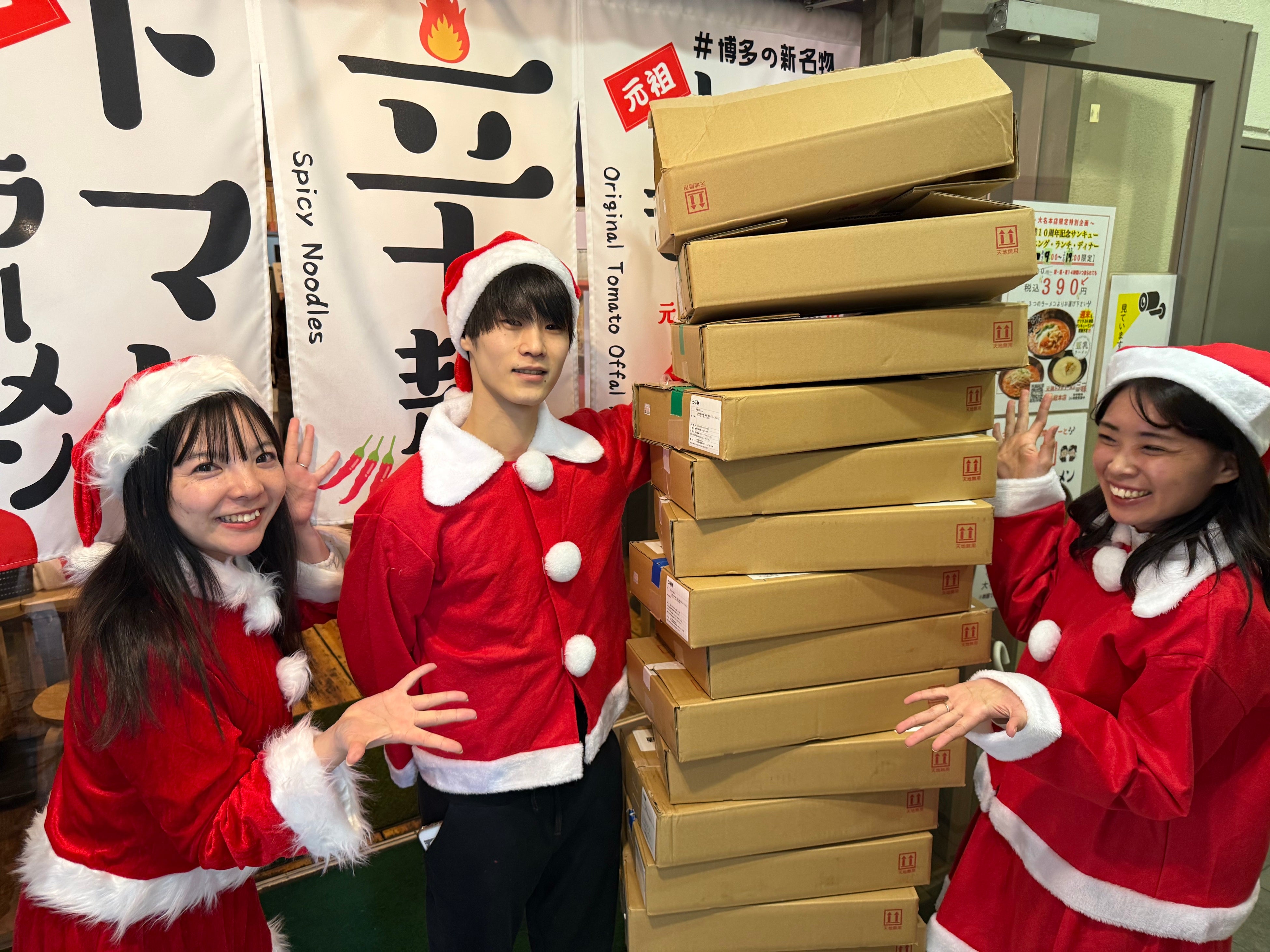 目標の2万杯には一歩届かなかったものの、天神大名総本店・天神大名中心店・博多駅東店ではそれぞれ3,000食を超えるご来店をいただくなど、多くの皆様に三味の味をお届けすることができました。 スタッフ一同、皆様の最高の笑顔に出会えたことが、何よりのクリスマスプレゼントとなりました。