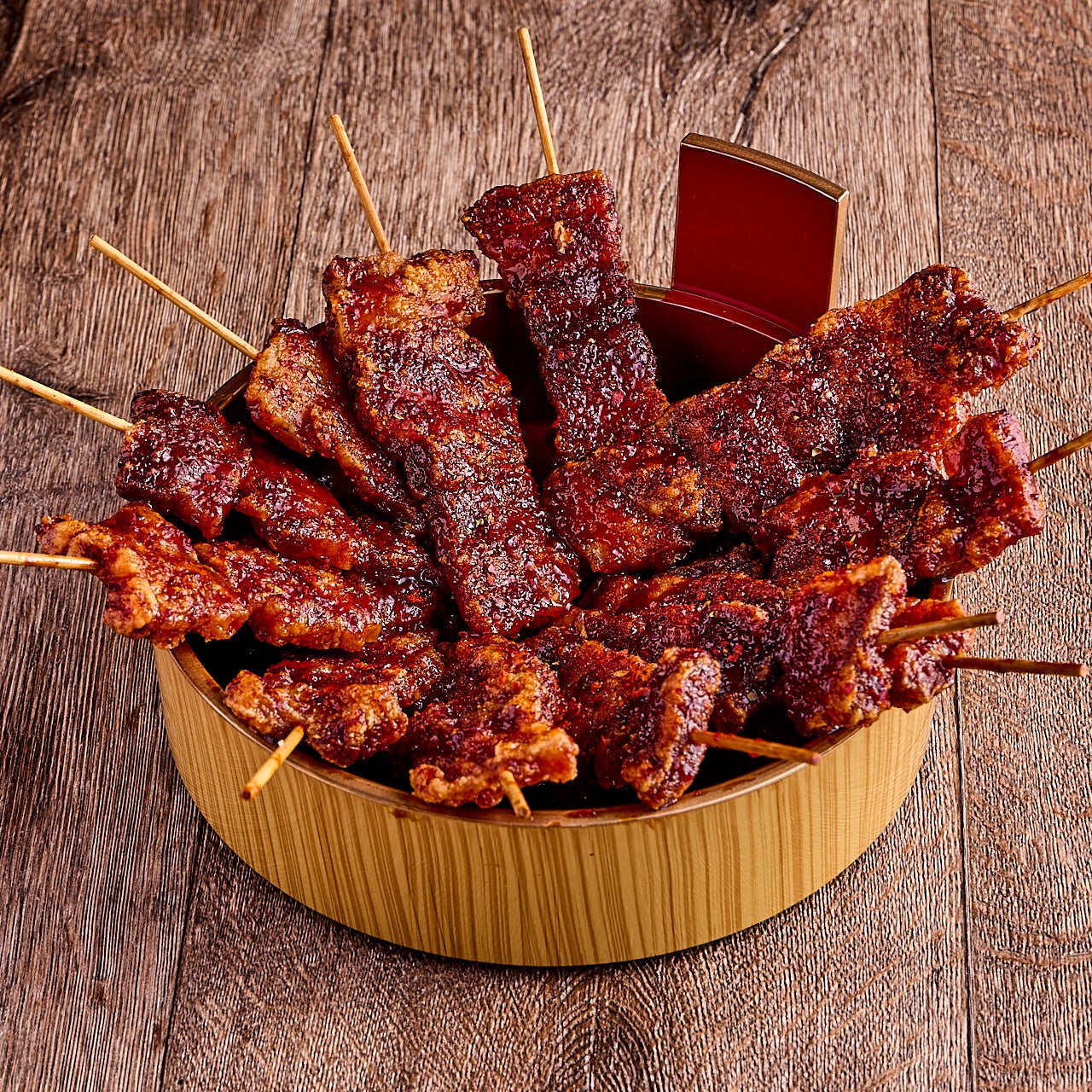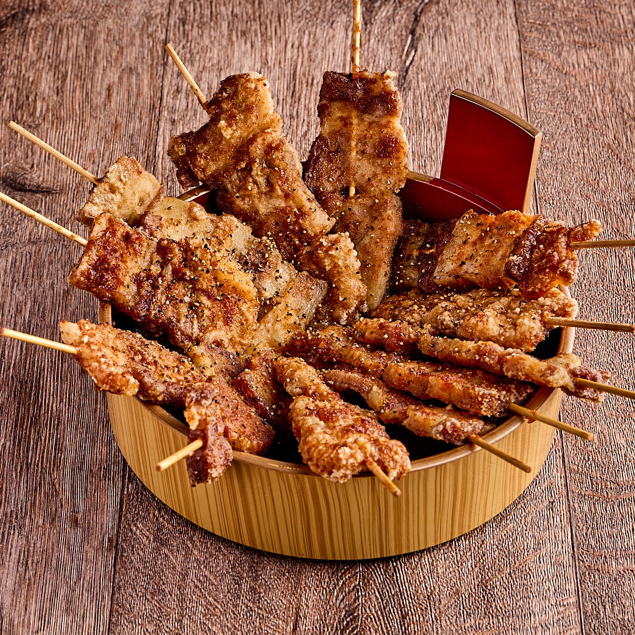 ご来店されたお客様に絶対に食べてほしい無二無三のオリジナル串メニュー。独自の調理法に秘伝のスパイスやタレを加えた白,赤.黒と3種をご用意。お口の中でジューシーな旨味が存分に広がり何本でも食べたくなってしまう中毒性抜群の魅惑の味わいが実現。他では味わう事のできないサケキタルのオリジナル商品をお楽しみ下さい。現在、100,000,000本企画実施中!たくさんのお客様に名物"バリとん焼き"をお届け!自慢の食べ飲み放題プランでもお楽しみいただけますので是非どうぞ。