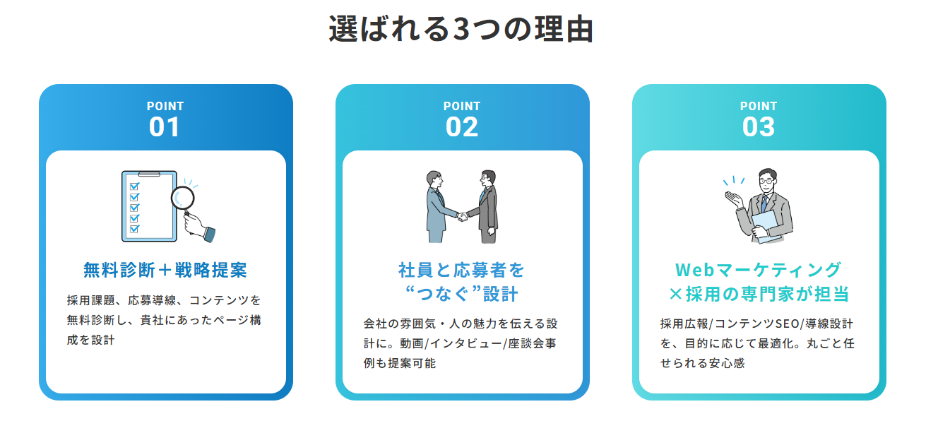 当社の「サイト改善コンサル付きプラン」では、これらの原因を根本から解消し、既存サイトを応募獲得のための強力なツールへと変革させます。