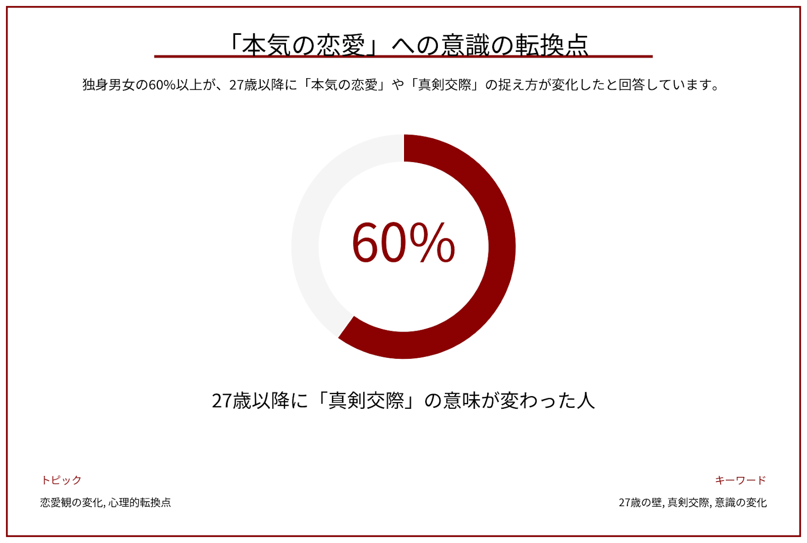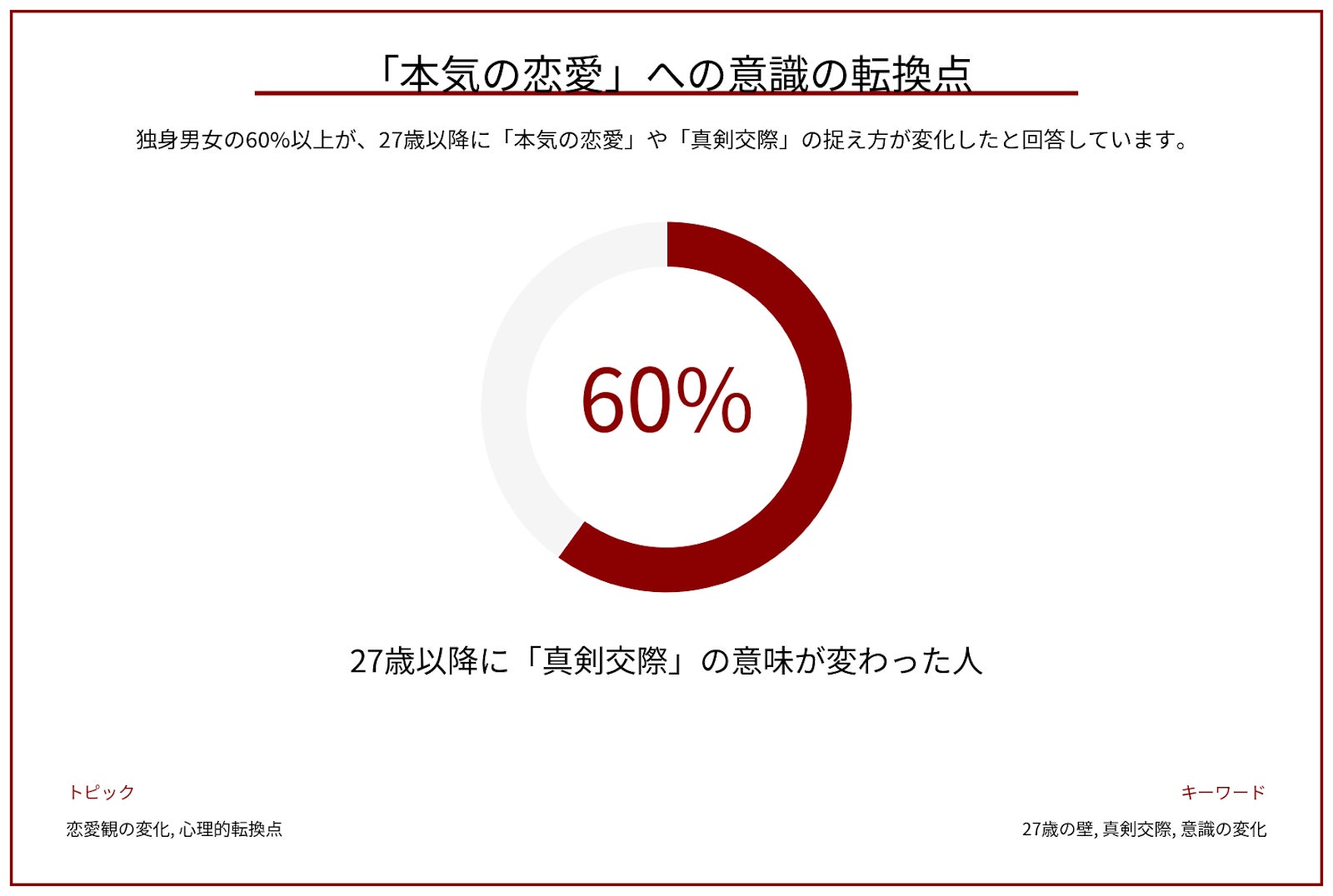 独身男女の 60%以上が「真剣交際の意味が変わったのは27歳以降」 と回答