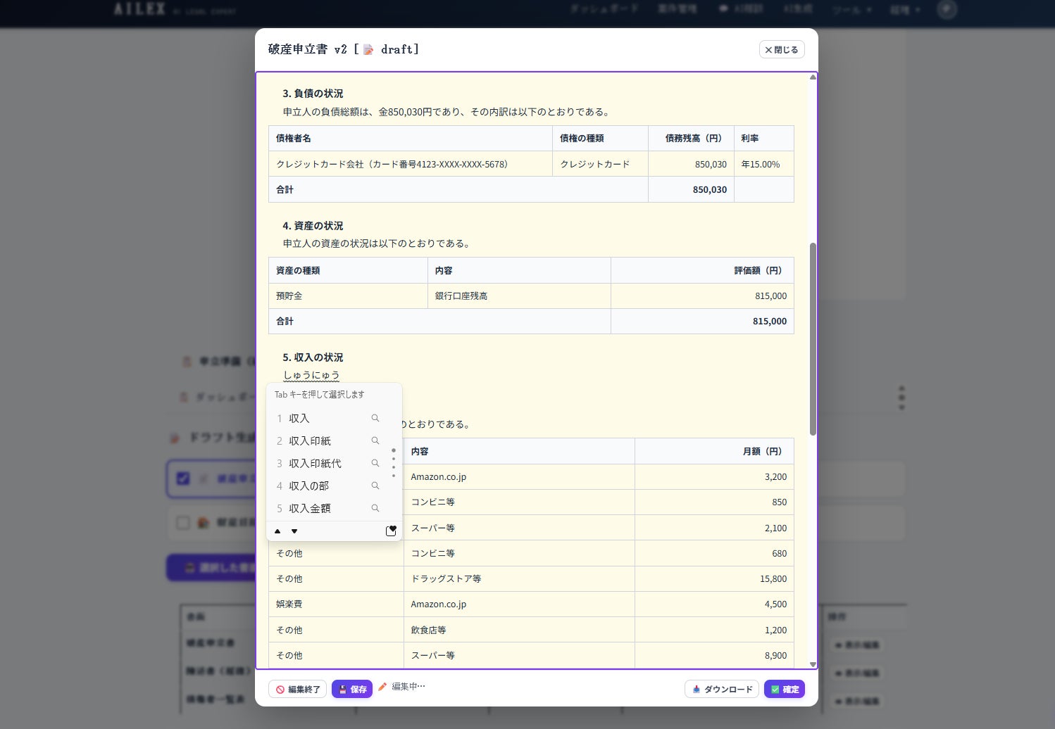 【AILEX 新機能】債務整理や交渉、相続など、弁護士の業務の80%をカバーする「案件管理機能」と、破産申立等の作業時間を最大70%短縮する「申立書類AIドラフト」を同時リリース。スマホにも完全対応。