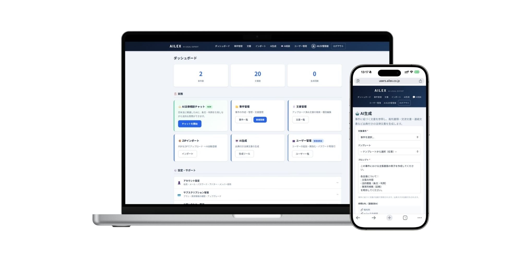 なお、AILEXは弁護士業務を補助するツールであり、最終的な判断・確認・提出は弁護士が行います。