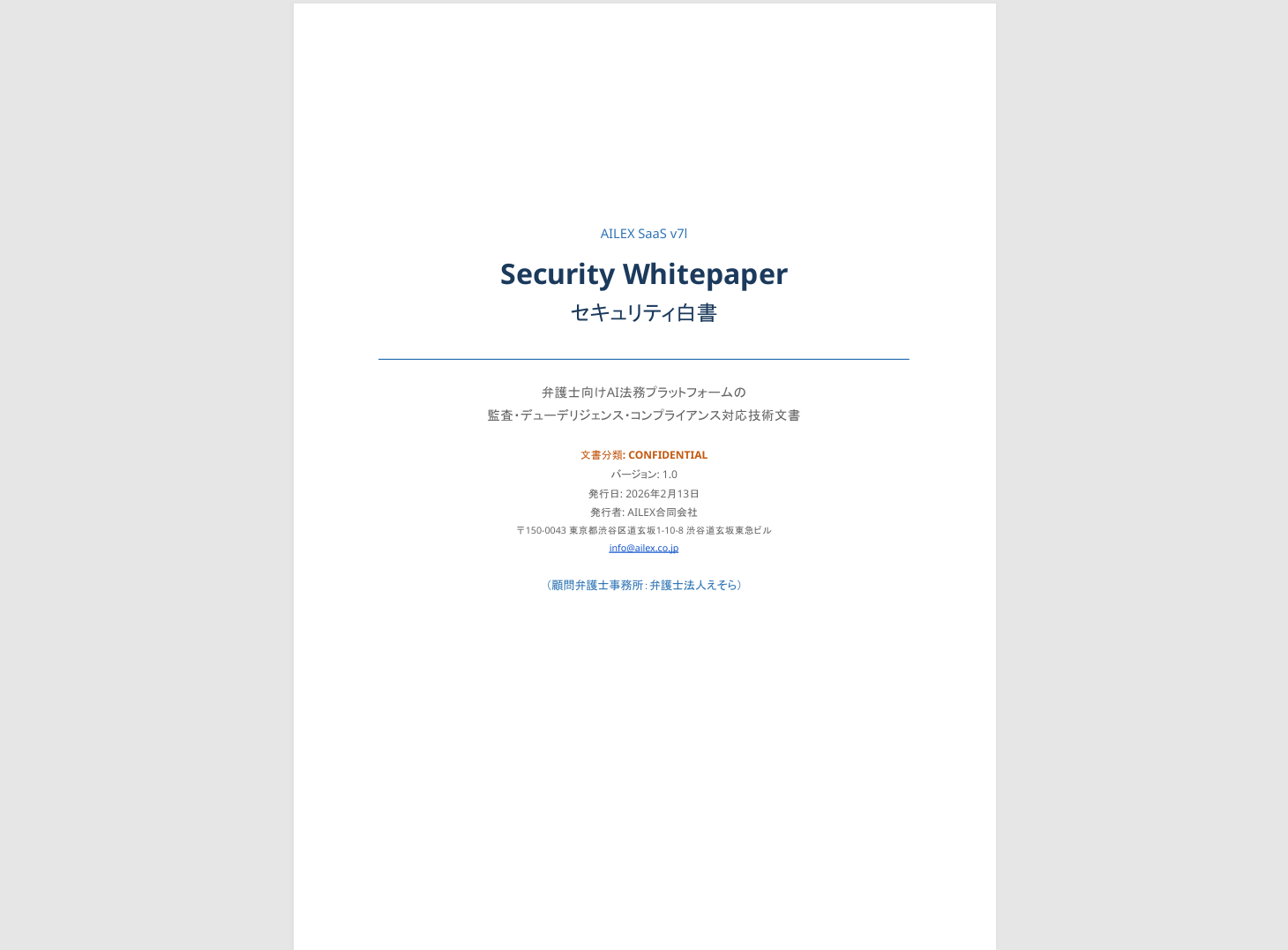 また、同日、導入を検討される法律事務所および弁護士会のコンプライアンス審査に対し、技術的根拠を持って回答できる文書の必要性を認識し「AILEX セキュリティ白書」の作成・公開に至りました。