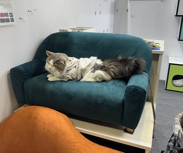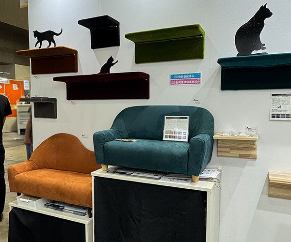 また、特許取得の技術を用いたキャットウォークや爪とぎラックの展示では、耐震試験をクリアした安全性の高さに加え、壁を傷つけにくく賃貸住宅でも設置できる取り入れやすさが注目されました。