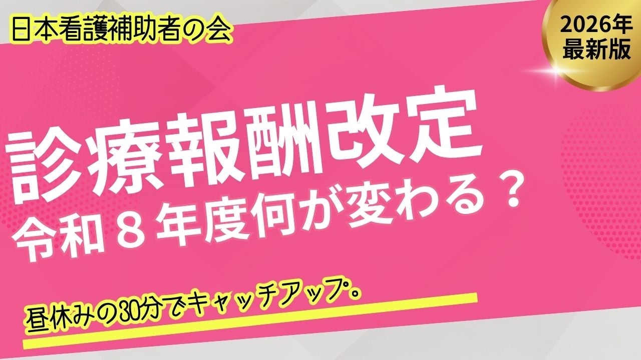 一般社団法人日本男性看護師會(東京都新宿区、代表理事:坪田康佑)のプロジェクトとして、「日本看護補助者の会」(会長:神田直孝)が始動しました。看護補助者の地位向上・資質向上を目的に設立した本会は、医療機関・派遣会社・行政との連携を通じて看護補助者を取り巻く環境改善に取り組みます。その第一弾として、2026年4月30日(木)12:30〜13:00、無料オンライン勉強会を開催します。令和8年6月1日より施行される診療報酬改定のうち、看護補助者の現場に直結する変更点を30分でわかりやすく解説します。