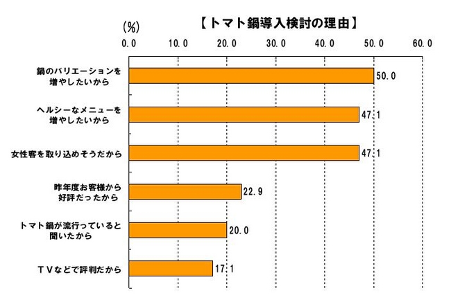 トマト鍋の導入を考えている飲食店にその理由を聞いたところ、1位「鍋のバリエーションを増やし