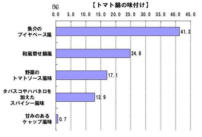 また、トマト鍋を導入する場合の味付けを聞いたところ、1位「魚介のブイヤベース風」41.3%、2位