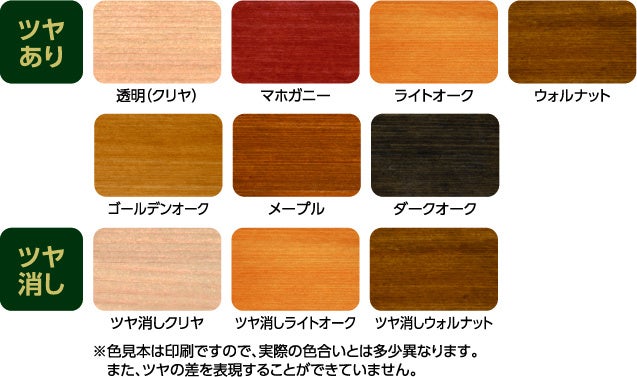 屋内外の木製品に塗装できる水性タイプのニスであり、DIY業界初の多色展開商品となります。