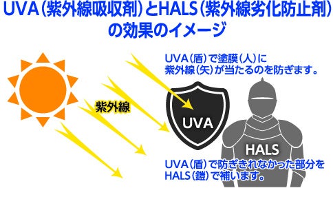「水性ニス プレミアム」は、UVA(紫外線吸収剤)およびHALS(紫外線劣化防止剤)を配合しており、従来品と比較して耐候性を向上させることで、使用用途が屋内から屋内外に広がりました。