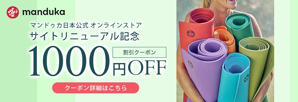 また新シーズンを迎え、Manduka Japan 公式オンラインストアも一新リニューアルOPEN。サイトリニューアルを記念して、1000円OFFクーポンプレゼントキャンペーン実施中です。