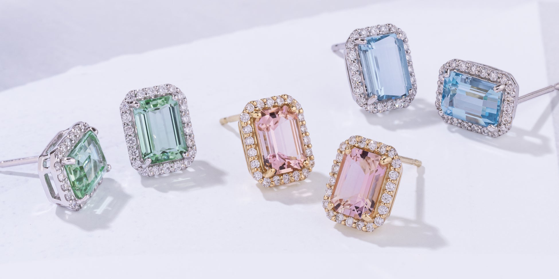 今回発表される8種類のピアスは、人気のアクアマリンとモルガナイトをはじめ、グリーントルマリン、タンザナイト、 ロンドンブルートパーズ、更に左右で異なる色のトルマリンを用いたデザインなど多彩なバリエーションを取り揃えております。