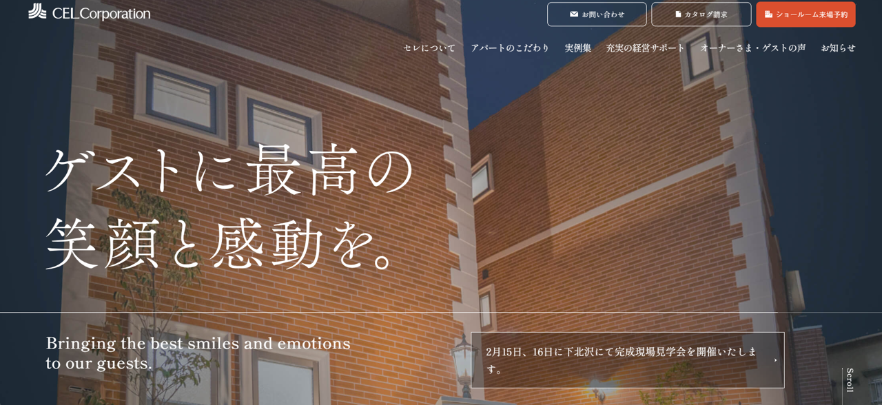 セレ コーポレーションの賃貸住宅事業サイトでは、暮らし方にこだわりを持つ若者に人気の空間設計をはじめ、優れた耐震性を実現する技術力や安心の賃貸経営を支えるサービスなどあらゆる情報をご紹介しています。