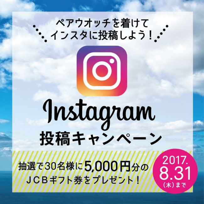 「チックタック」公式インスタグラムアカウント「@tictac_press」をフォローして「二人で腕時計を着けた写真」を投稿いただいた方から抽選で30名様に、5000円分のJCBギフト券をプレゼントいたします。