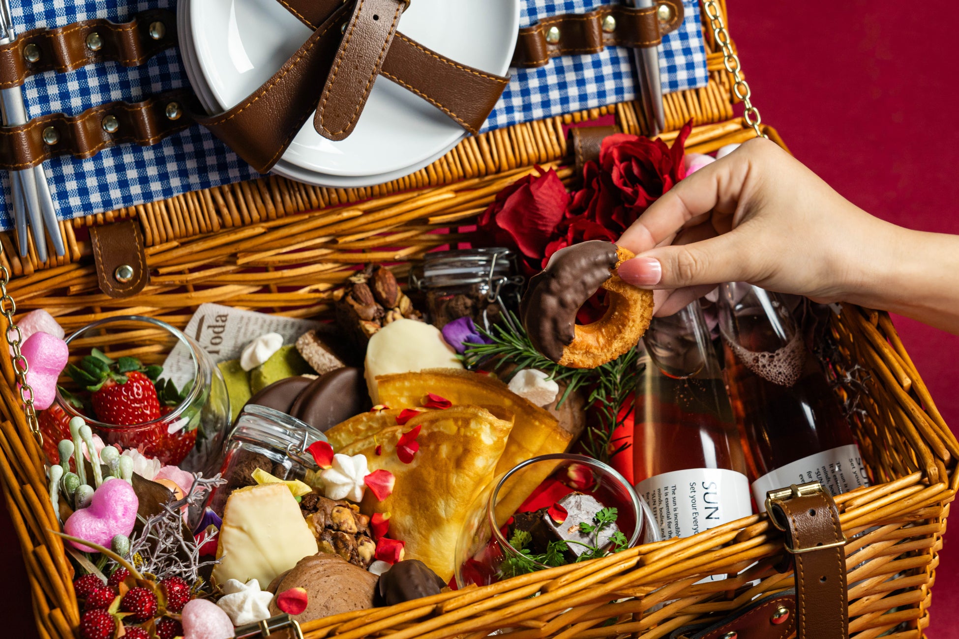 ホテル出身の料理長がこだわりを持って丁寧に作り上げるスイーツの数々を可愛らしいピクニックバスケットに詰め込みました。