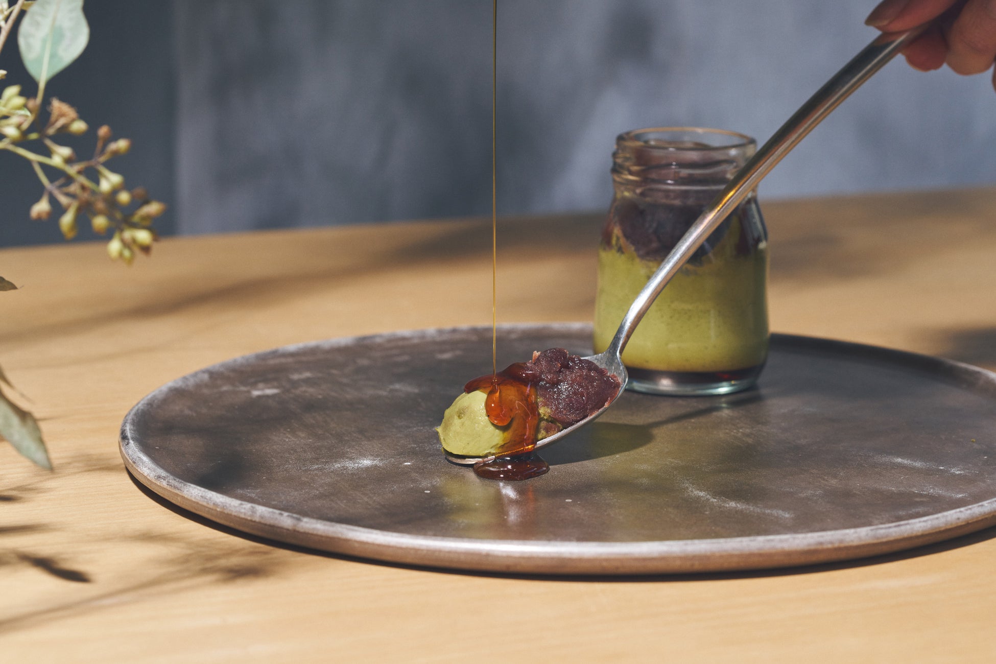 コクと旨みが活きる国産卵「昔の味たまご」を軸に、北海道産生クリーム、北海道産てんさい糖でつくったシンプルなプリン生地へ宇治抹茶を贅沢に混ぜ込みオーブンでじっくり蒸し焼きにしました。抹茶テリーヌのような濃密食感で重厚な食べ心地が楽しめる抹茶プリンとなっており、濃厚な生地に負けないよう糖度の高い特製あんこを使用。プリン生地と一緒に食べた時、あんこも溶けるよう柔らかく炊いています。