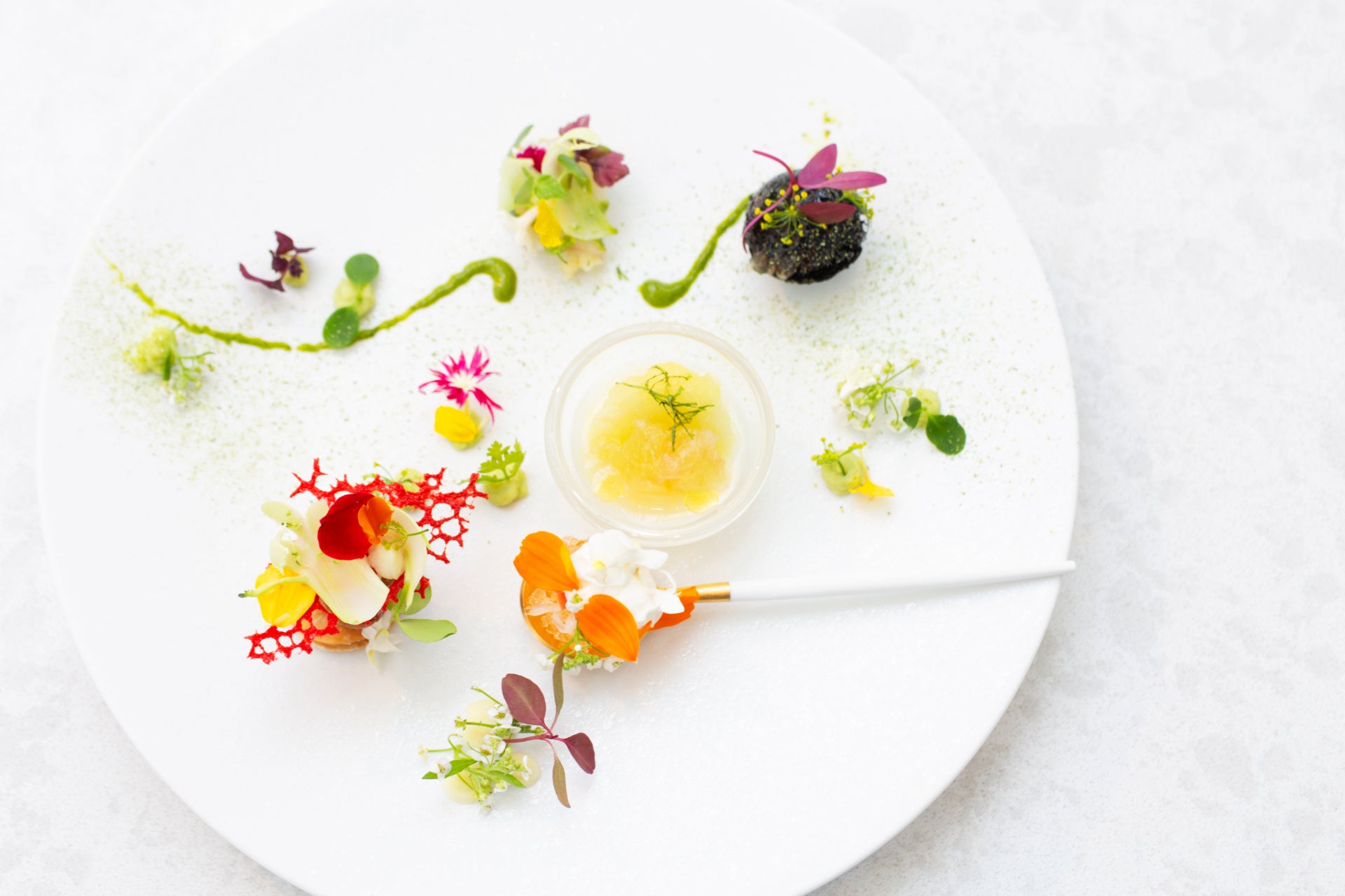 レストラン「アマデウス」は、非日常の空間でときめくひとときをご提供するため、新しいフレンチの形「Cuteフレンチ」を提唱。アンプレッショニスム(印象派)をテーマに、ふんわりと柔らかな色彩で絵画のように仕上げ唯一無二の可愛さと美しさを一皿へ昇華いたします。さらにキュイジーヌナチュールの技法で、食材と真摯に向き合い、旨味を最大限に引き出します。食べ疲れることのないよう体への優しさにもこだわり、食への好奇心(ときめき)をくすぐる料理を追求してまいります。