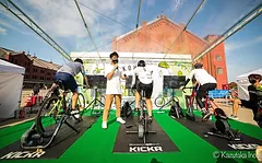 バーチャルサイクリングアプリ「ROUVY」で横浜みなとみらいのコースを再現。イベントのフィナーレとしてステージ上で熱いレースを繰り広げていきます。