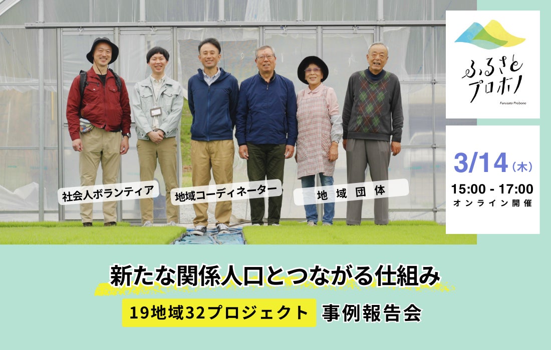新たな関係人口とつながる仕組み「ふるさとプロボノ」~19地域32のプロジェクト事例報告会~ <オンライン開催>