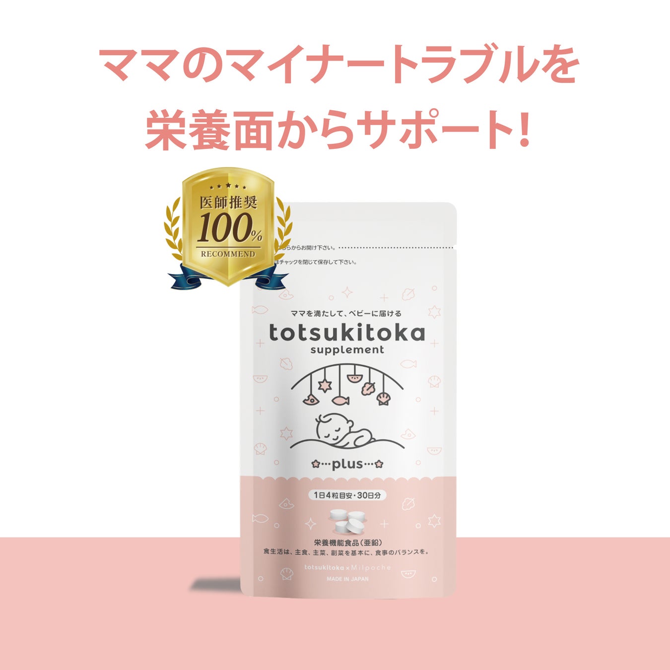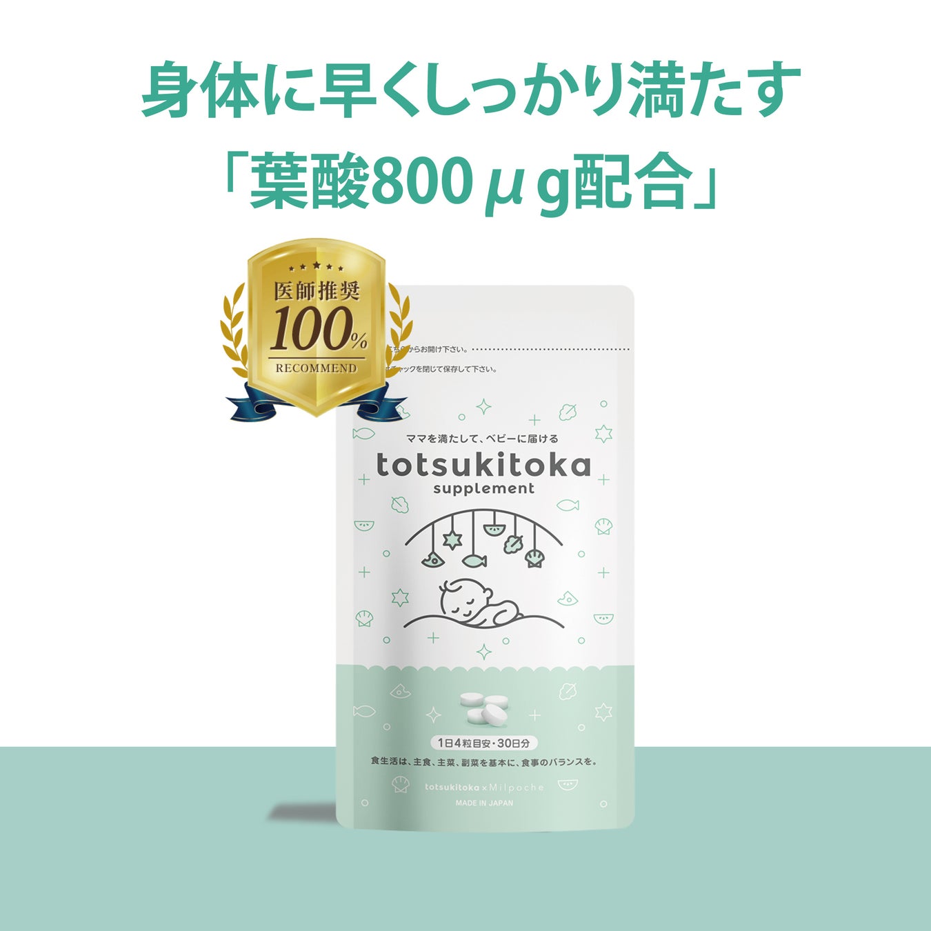 【医師の100%が推奨】ママと赤ちゃんのためのサプリブランド「トツキトオカサプリメント」が妊婦さんにおすすめする葉酸サプリとして医師推奨マークを取得