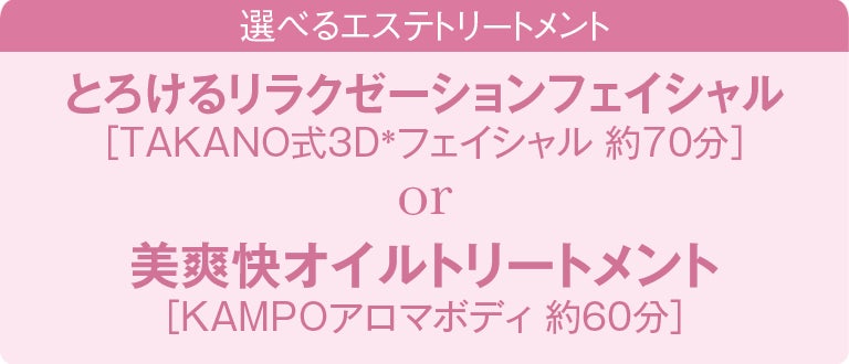 下記のフェイシャルまたはボディコースのいずれか1コースをお選びいただけます。
