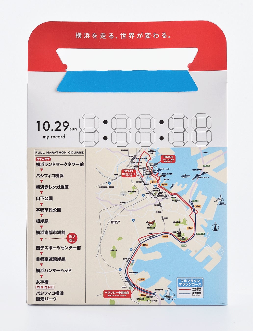 パッケージ裏面にはマラソンコース図が載っており、お土産・マラソン観戦の記念にぴったり。また今年は、大会事務局の公式サービス企画の一環として、参加者の出走記録を自身で記入できる“マイレコード”ステッカー付きです。横浜を思い切り駆け抜けた方、大きな声援を送った方、ボランティアで参加した方など色々な形で横浜マラソンを楽しんだ皆さまの思い出となるパッケージに仕上げました。