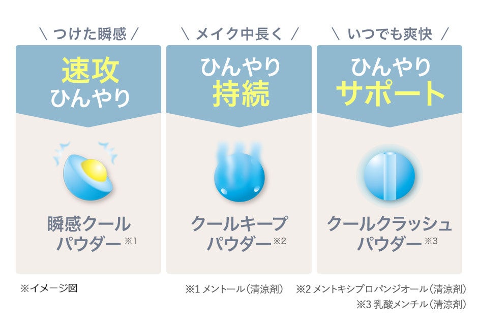 ●3種のクールパウダーで瞬間ひんやり長く続く