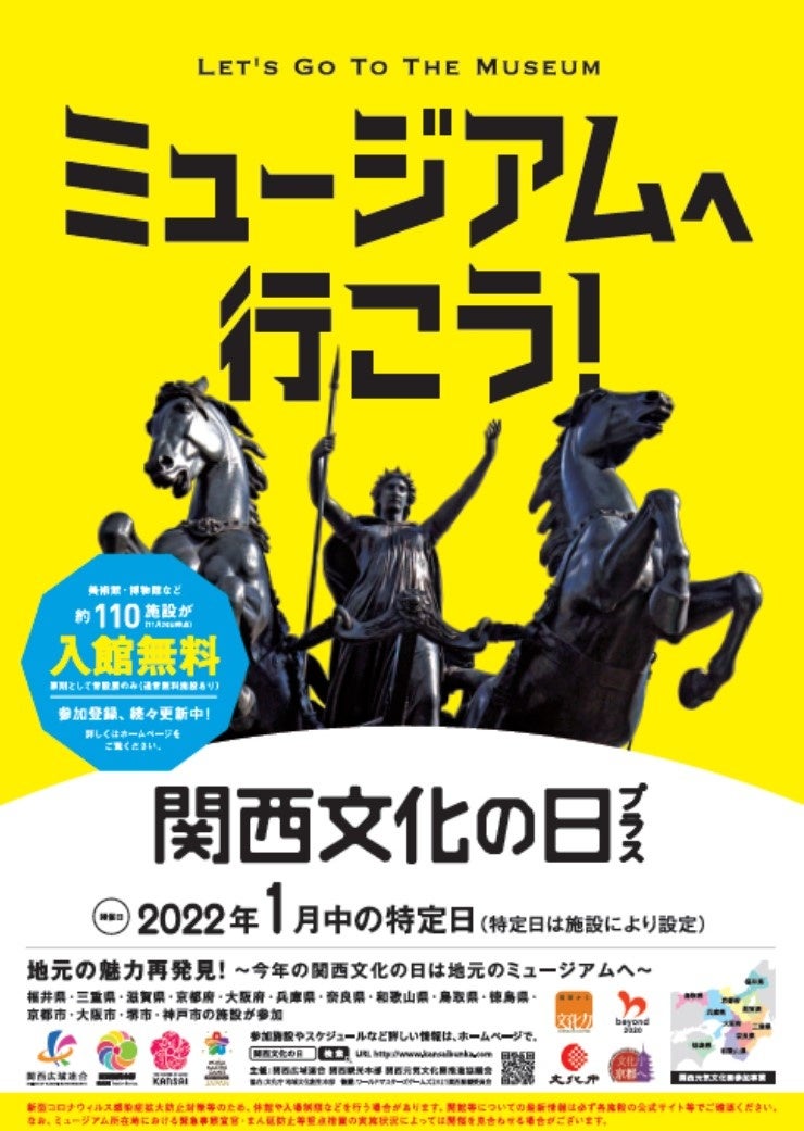 例年11月に関西の「関西文化の日」が、今年度は、特別企画として1月にも開催!関西の美術館・博物館などの文化施設が入館無料に