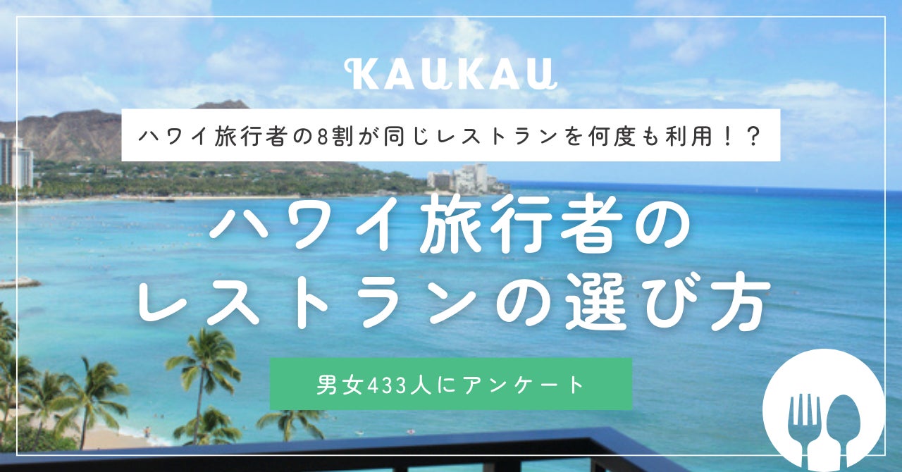 UniValue Creations LLC(本社:ホノルル、代表取締役社長:前田 恒)が発行するハワイ情報メディア「KAUKAU(カウカウ)」は、全国の男女433人を対象に「ハワイ旅行中のレストラン利用について」のアンケート調査を実施しました。詳細は以下の通りです。