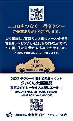 この夏、東京のタクシーは人と社会を元気にする 「110の言葉」 を発信します。
