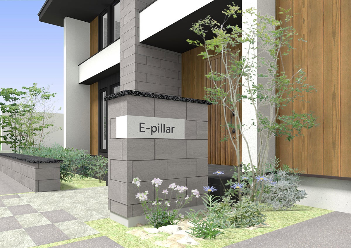蓄電池と門柱のハイブリッドデザインとし、設備機器としての蓄電池ではなく、建物やエクステリアと一体となるようにデザインしました。